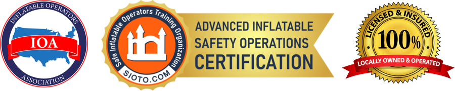 - OCCUPANCY: A maximum of 5-6 kids of equal size at one time for bounce houses, and 1 person at a time for slides is what most inflatable manufacturers recommend.