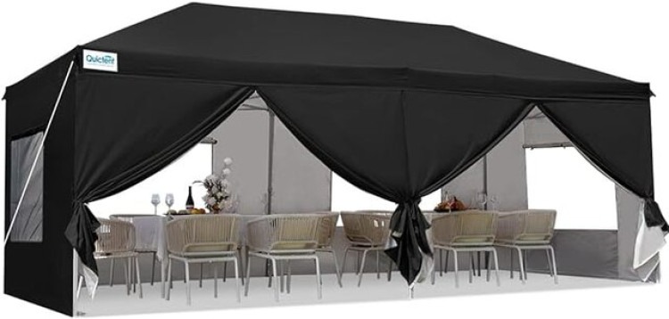 10 x 20 Tent, 3 x 6' Tables, 18 Chairs - Black